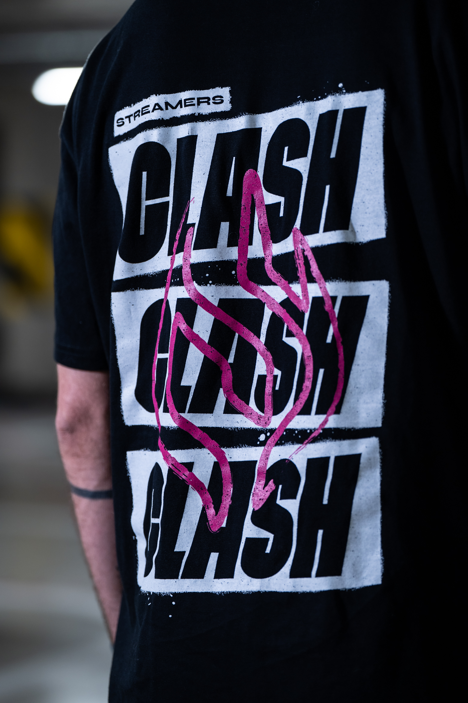 Tohle triko není jen merch, ale statement. Oversized střih ti dodá ten správnej relaxed vibe a kvalitní materiál drží tvar i po x washech. Na zádech máš výraznej potisk, kterej přitáhne oči dřív, než stihneš říct „gg“. Všechno je poctivý sítotisk a výšivka, žádný fake detaily. Když ho vezmeš na sebe, je hned jasný, že patříš ke Streamers Clash family.