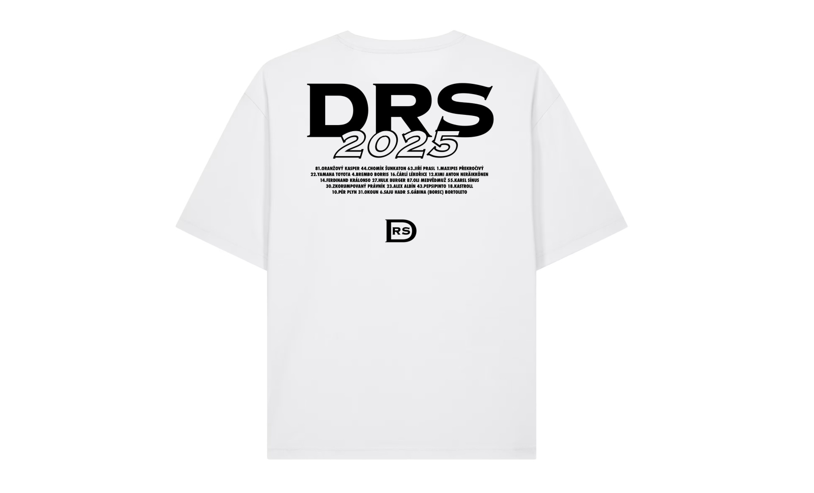 Chceš mít vzpomínku na F1 sezónu 2025 s DRS komunitou? Na tomhle designu máš všechno! DRS, Ročník a všechny přezdívky jezdců!